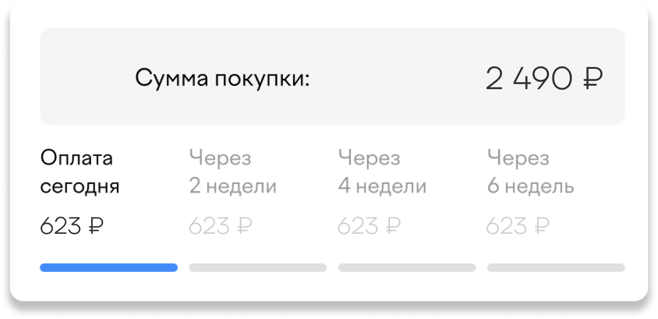 Платеж можно разбить на 4 части и выплатить в течение месяца